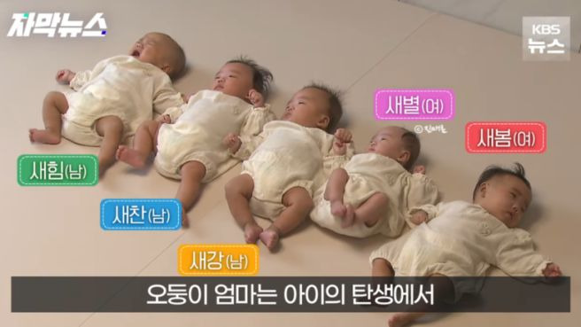 - 다섯쌍둥이 이름 : 새힘, 새찬, 새강, 새별, 새봄