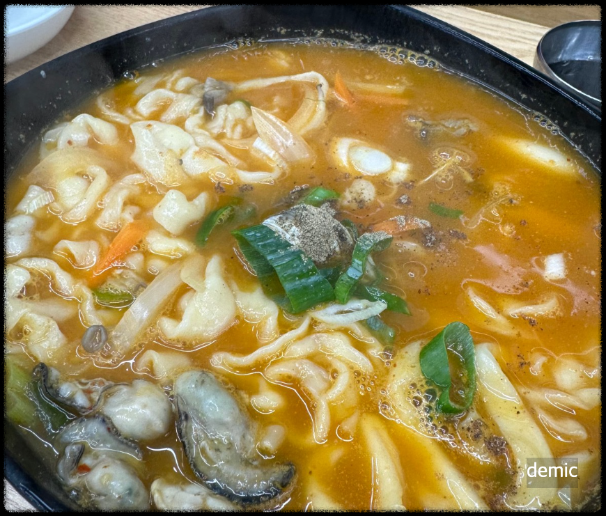 대표 메뉴 손칼국수(6,000원) 는 매일 직접 반죽해 썰어낸 면의 쫄깃한 식감이 일품입니다. 얼큰한 국물을 원한다면 얼큰칼국수(7,000원), 얼큰굴칼국수(9,000원), 매생이굴칼국수(9,000원) 도 인기입니다. 특히 백합조개가 듬뿍 들어간 백합조개칼국수(9,000원) 는 해장 메뉴로도 손꼽히죠.