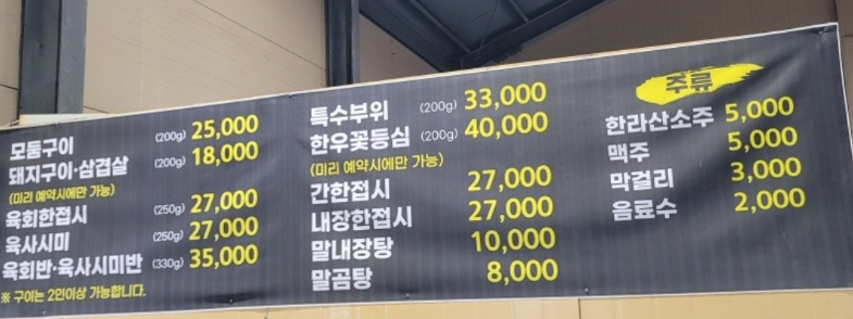 - 말고기 육회(250g) : 약 25,000원