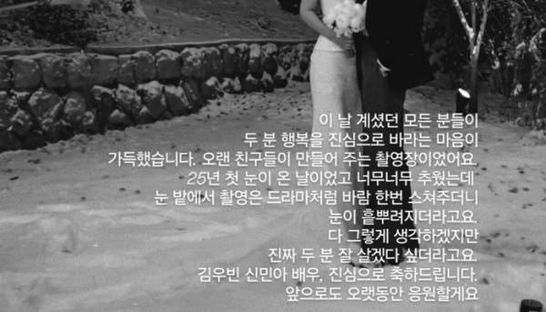김우빈과 신민아는 2015년 패션 브랜드 화보 촬영을 계기로 인연을 맺은 뒤 공개 열애를 시작했다. 이후 각자 바쁜 작품 활동 속에서도 관계를 조용히 이어오며 연예계 대표 장수 커플로 자리 잡았다. 스캔들 없이 이어진 10년의 공개 연애는 신뢰와 존중을 바탕으로 한 관계의 표본으로 평가됐다.
