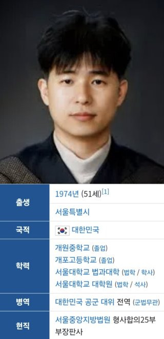 - 현직 : 서울중앙지방법원 형사합의25부 부장판사
