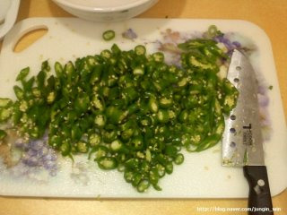 1️⃣ 먼저 청양고추를 잘게 썰어 준비합니다.