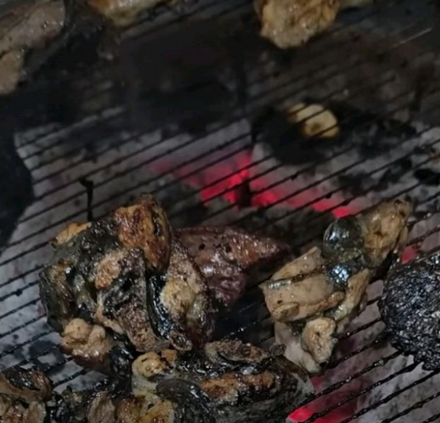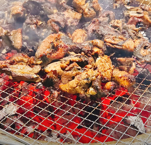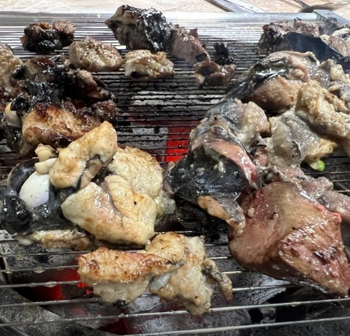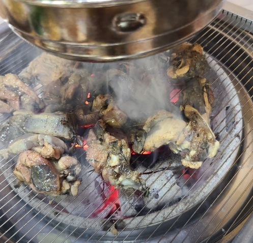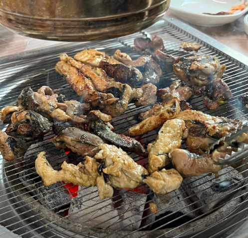 화려한 인테리어보다는 오래된 로컬 식당 분위기가 강해 오히려 여행지 맛집 느낌이 더 살아난다. 숯불이 테이블 위에 올라오고 오골계 고기가 불판 위에서 지글지글 익기 시작하면 고소한 향이 금방 주변에 퍼진다. 일반 닭고기보다 색이 짙고 육질이 단단한 편이라 처음 보는 사람에게는 조금 낯설 수 있지만 한 입 먹어 보면 확실히 식감이 다르다. 쫄깃하면서도 담백하고 씹을수록 고소한 풍미가 올라온다.