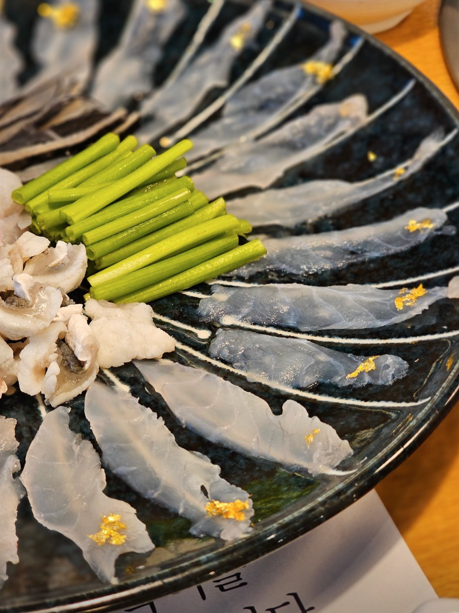 이곳은 24년 경력 명인이 운영하는 복요리 전문점으로, 복어 한 마리를 다양한 방식으로 풀어내는 구성이 인상적이다. 대표 메뉴인 참복사시미는 얇게 포를 떠낸 뒤 특유의 꼬들한 식감을 살려내며, 씹을수록 은은한 단맛이 올라온다.
