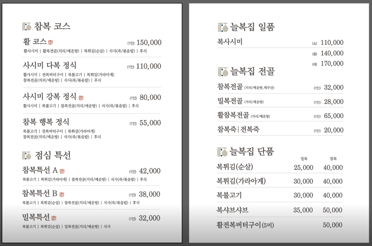 - 참복특선A(점심) : 42,000원