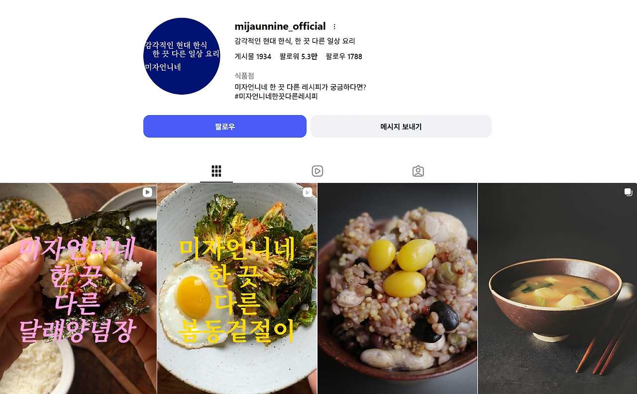 - 소속사 : 미자언니네 요리연구소 대표