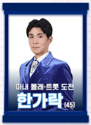 MBN ‘무명전설’ 첫 무대에서 한가락은 ‘남자라는 이유로’를 선곡하며 자신의 인생을 노래로 풀어냈다. 화려한 기교 대신 깊은 감정과 진정성 있는 음색으로 무대를 채웠고, 전주부터 이어지는 몰입감은 심사위원들의 시선을 단번에 사로잡았다.