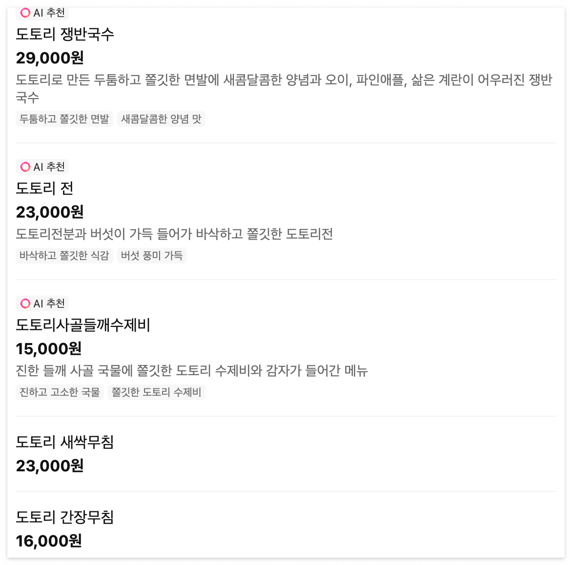 - 상호명 : 광교산도토리국수