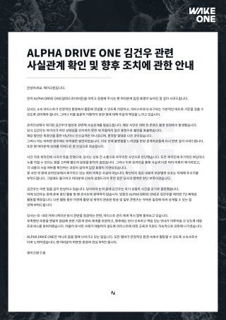 논란이 확산되자 웨이크원은 추가 의혹에 대해서는 사실이 아니라고 선을 그으면서도, 관리 부족에 대한 책임을 인정했다. 이어 김건우가 깊이 반성하고 있으며, 당분간 활동을 중단하고 자숙의 시간을 갖기로 했다고 밝혔다. 이에 따라 ALPHA DRIVE ONE은 김건우를 제외한 7인 체제로 활동을 이어가게 됐다.