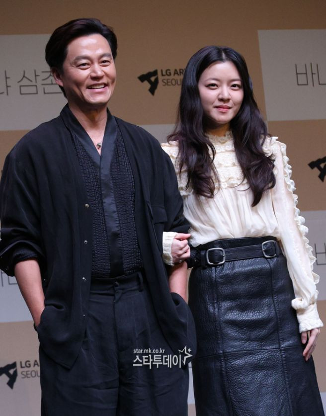 이번 작품에는 배우 고아성이 함께 출연해 소냐 역을 맡았다. 두 사람은 실제로도 나이 차가 있는 관계로 극 중 설정과 자연스럽게 맞아떨어지는 호흡을 보여주고 있다. 방송 출연을 통해 연극 준비 과정과 무대에 대한 부담, 그리고 새로운 도전에 대한 설렘을 솔직하게 전했다.