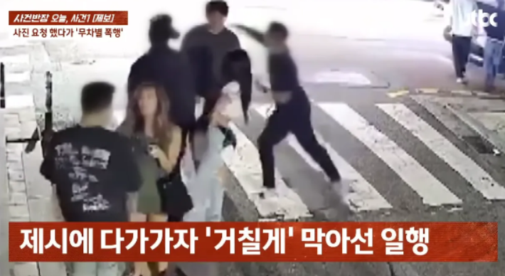 JTBC ‘사건반장’ 보도에 따르면, 18세 미성년자인 A씨는 사진 요청을 거절당한 후, 인근에 있던 한 남성에게 폭행을 당했습니다. 이 장면은 폐쇄회로(CC)TV에 고스란히 포착되었고, 당시 제시는 당황한 듯한 모습을 보이다가 별다른 조치 없이 현장을 떠났다고 전해졌습니다.