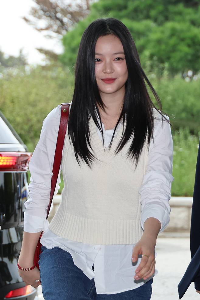 화이트 셔츠에 니트 조끼, 청바지 차림으로 등장한 하니는 미소를 지으며 입장했다. 그는 팬들을 향한 메시지 요청에 "팬분들은 다 아시니까 따로 말하지 않아도 된다"고 간단히 답했다.