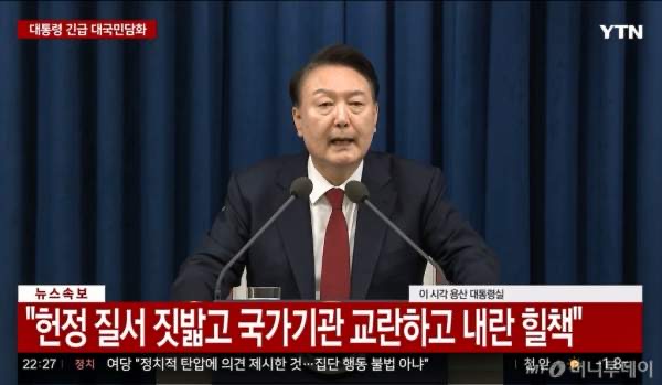 윤석열 대통령, 비상계엄 선포... 종북 세력 척결 및 헌정질서 수호 선언