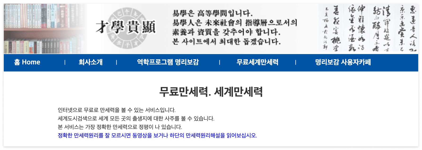 무료만세력, 만세력, 한글만세력, 만복가, 무료사주, 팔자제요, 궁통보감, 사주잡설, 토정비결, 팔괘풍수
